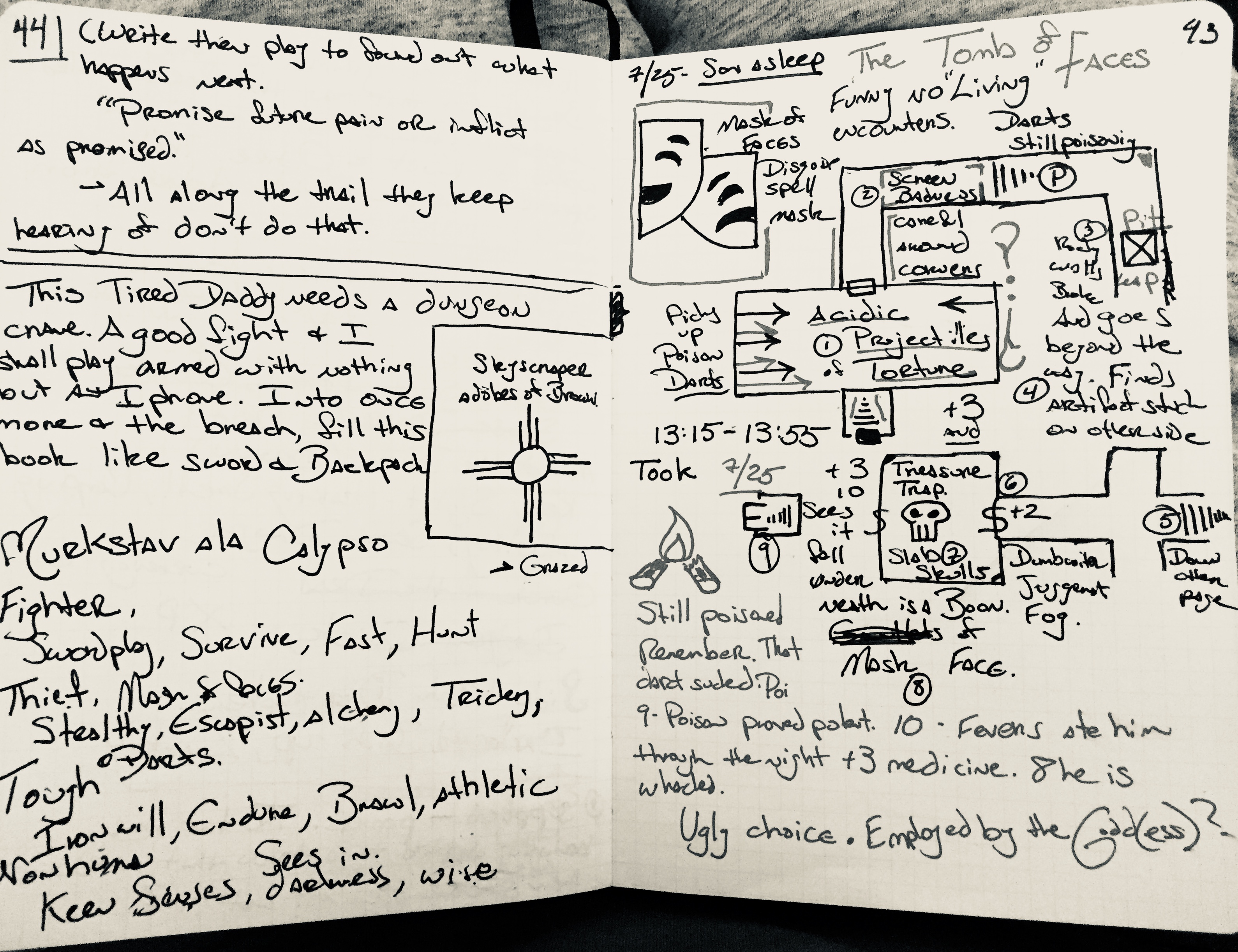 While my son took a nap I sailed to Calypso Island and descended into the “Tomb of Faces” in the guise of my dungeoneer Murkstav.